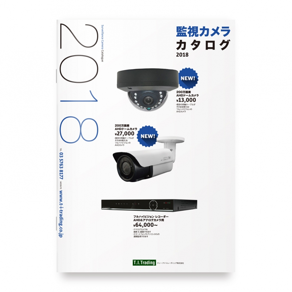 文字通り監視カメラのカタログ。本件で2年目のデザイン。スマートでスタイリッシュなデザインを目指して作っています。あり写真だけの構成ですが、なかなかうまいレイアウトになりました。CL:T.I.Trading