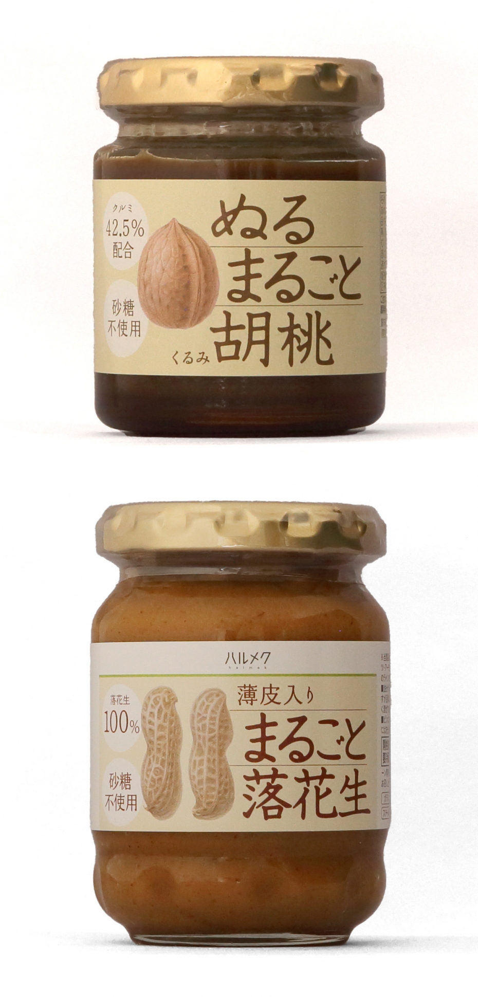 パッケージデザイン 「ぬるまるごと胡桃」「薄皮入りまるごと落花生」CL:ハルメク