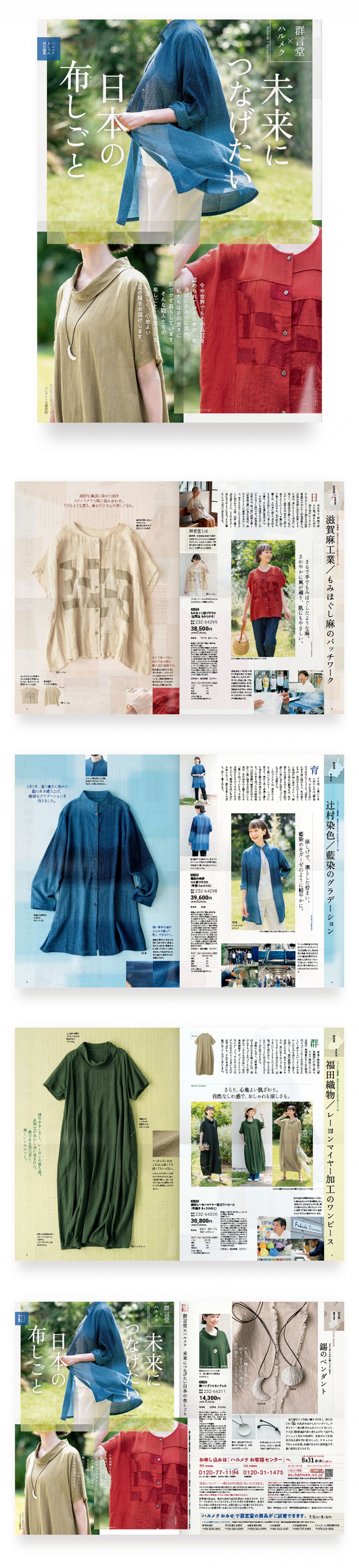 通販カタログのデザイン B4 8ページ 「群言堂×ハルメク 未来につなげたい日本の布仕事」2022 ハルメク