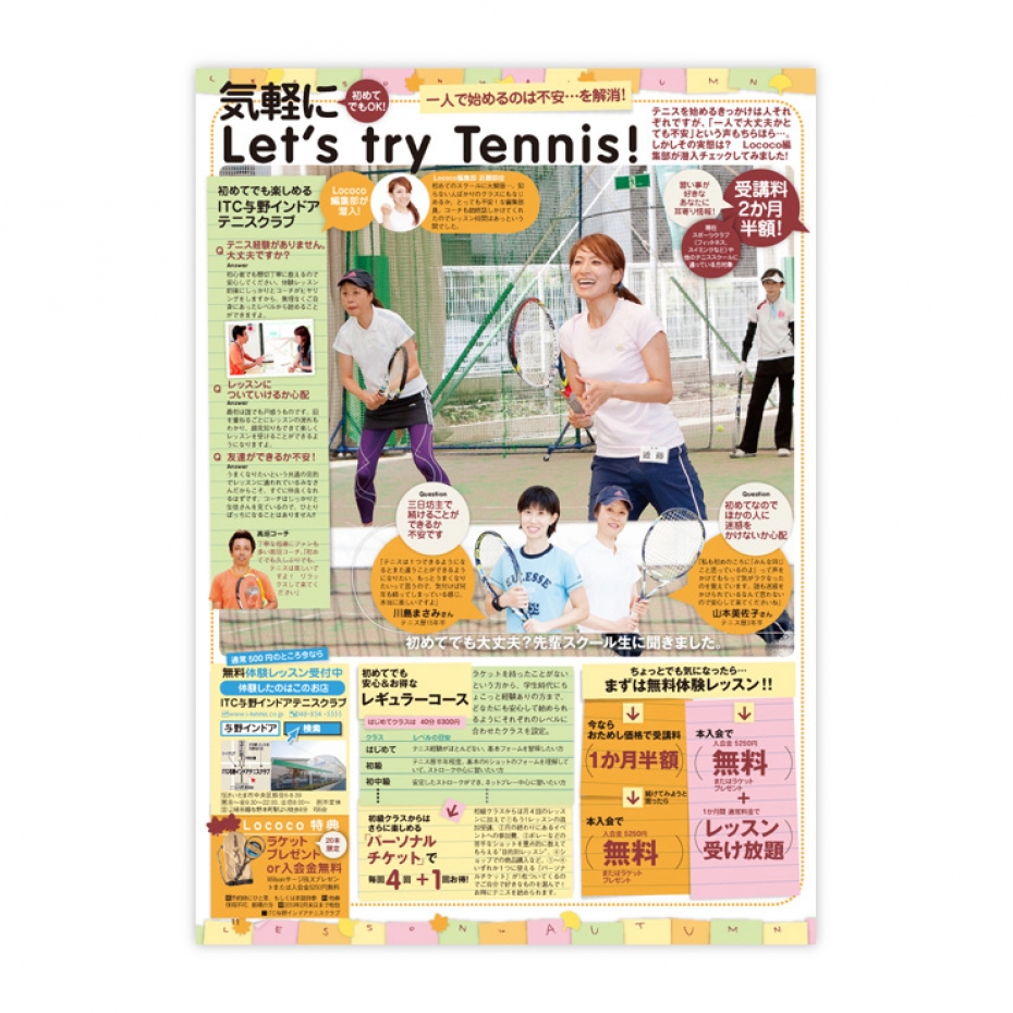 テニススクールタイアップ雑誌記事 CL:KADOKAWA (デザイン+レイアウト/Design + Layout 担当)