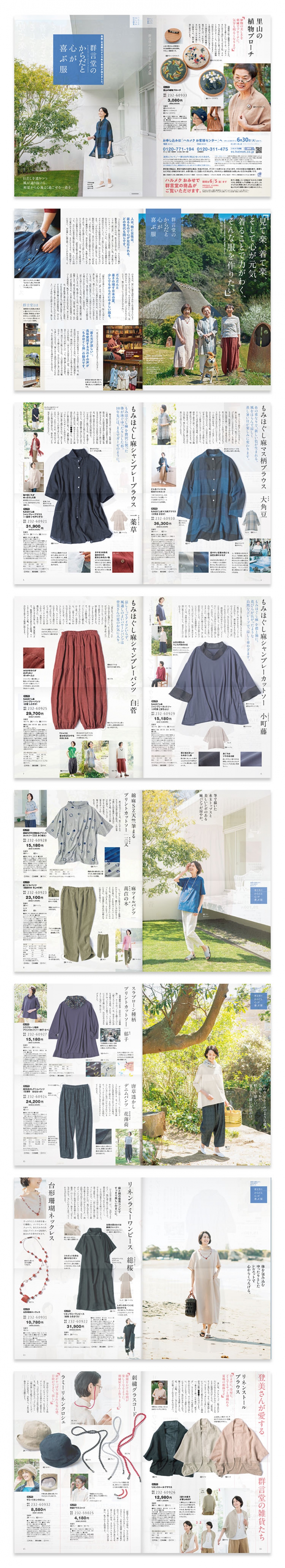 通販カタログのデザイン B4 16ページ 「群言堂のからだと心が喜ぶ服」