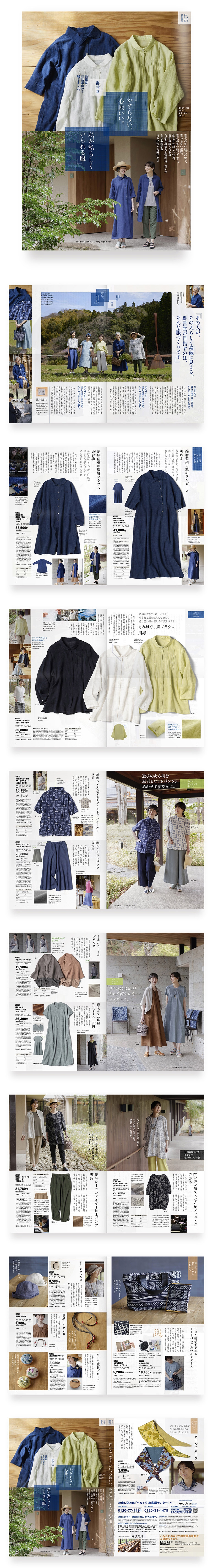 通販カタログのデザイン B4 16ページ 「群言堂 かざらない心地いい。私が私らしくいられる服」2022 ハルメク